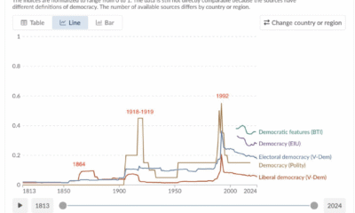 New data published by the Our World in Data platform reflects the complex historical trajectory of the democracy index in Azerbaijan over the past two centuries....