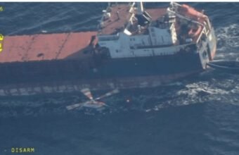 Authorities said the 96.3-meter-long cargo vessel was sailing under a false...