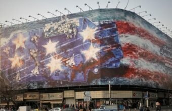 Iran displays mural warning of response to potential US attack