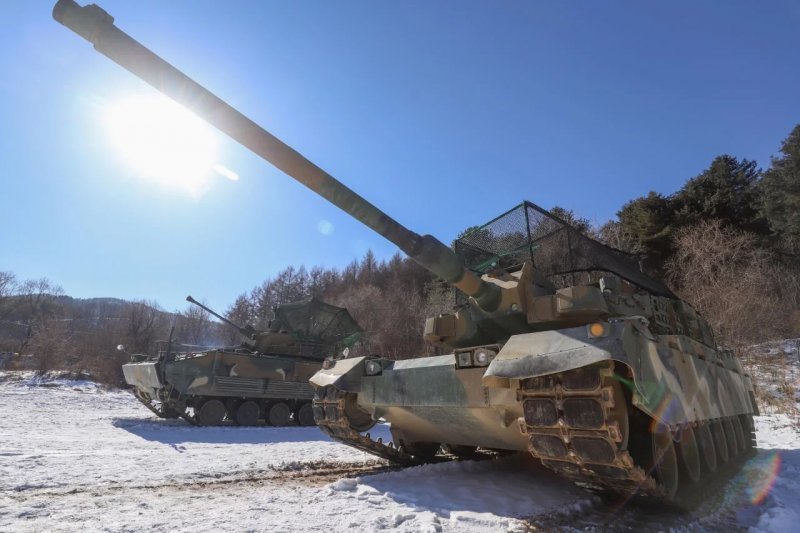 The corresponding protective elements were spotted on Korean main battle tanks during training and testing in winter conditions.